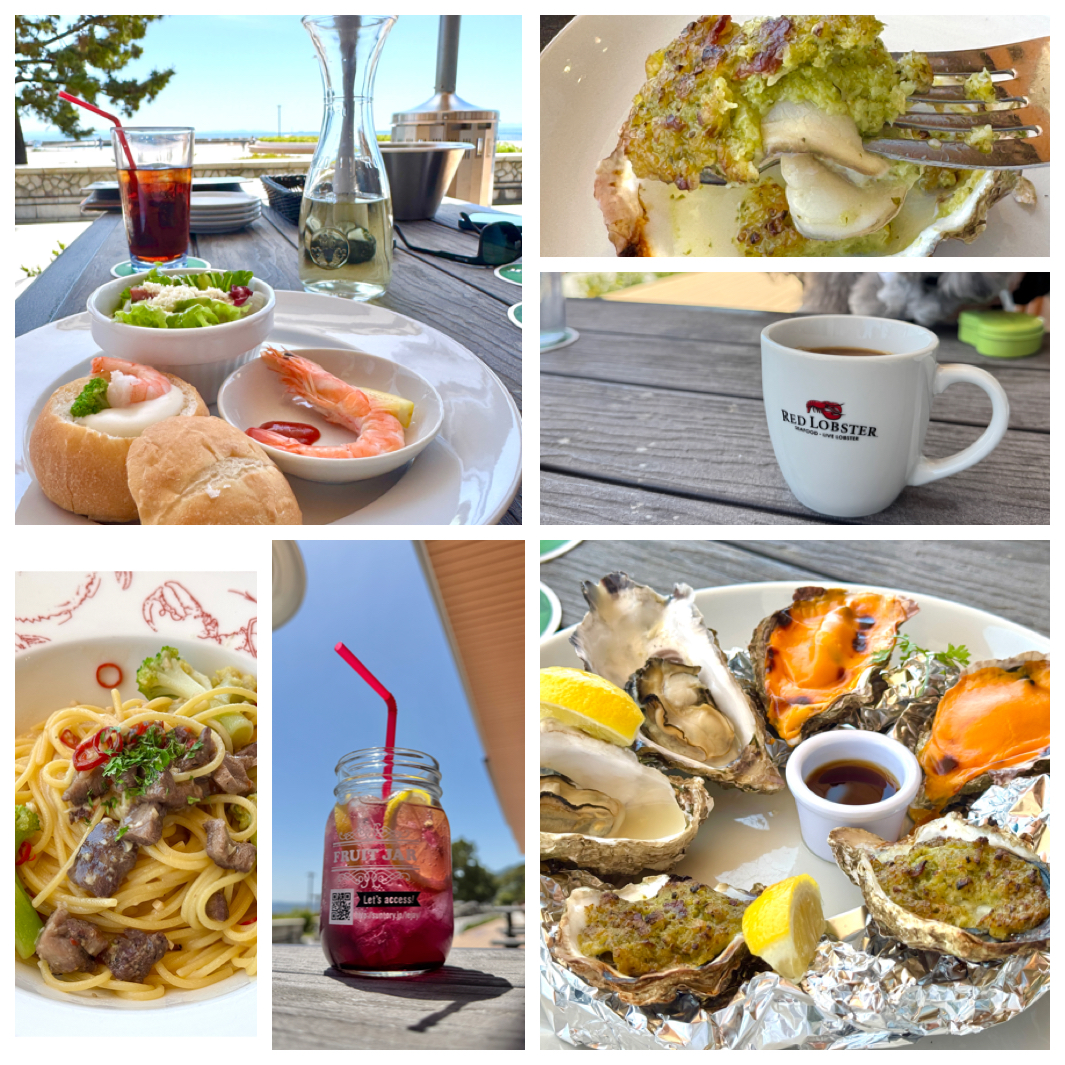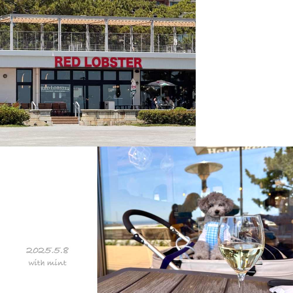 mintが一緒なのでレッドロブスターのテラス席。風も微風でとても快適でした。