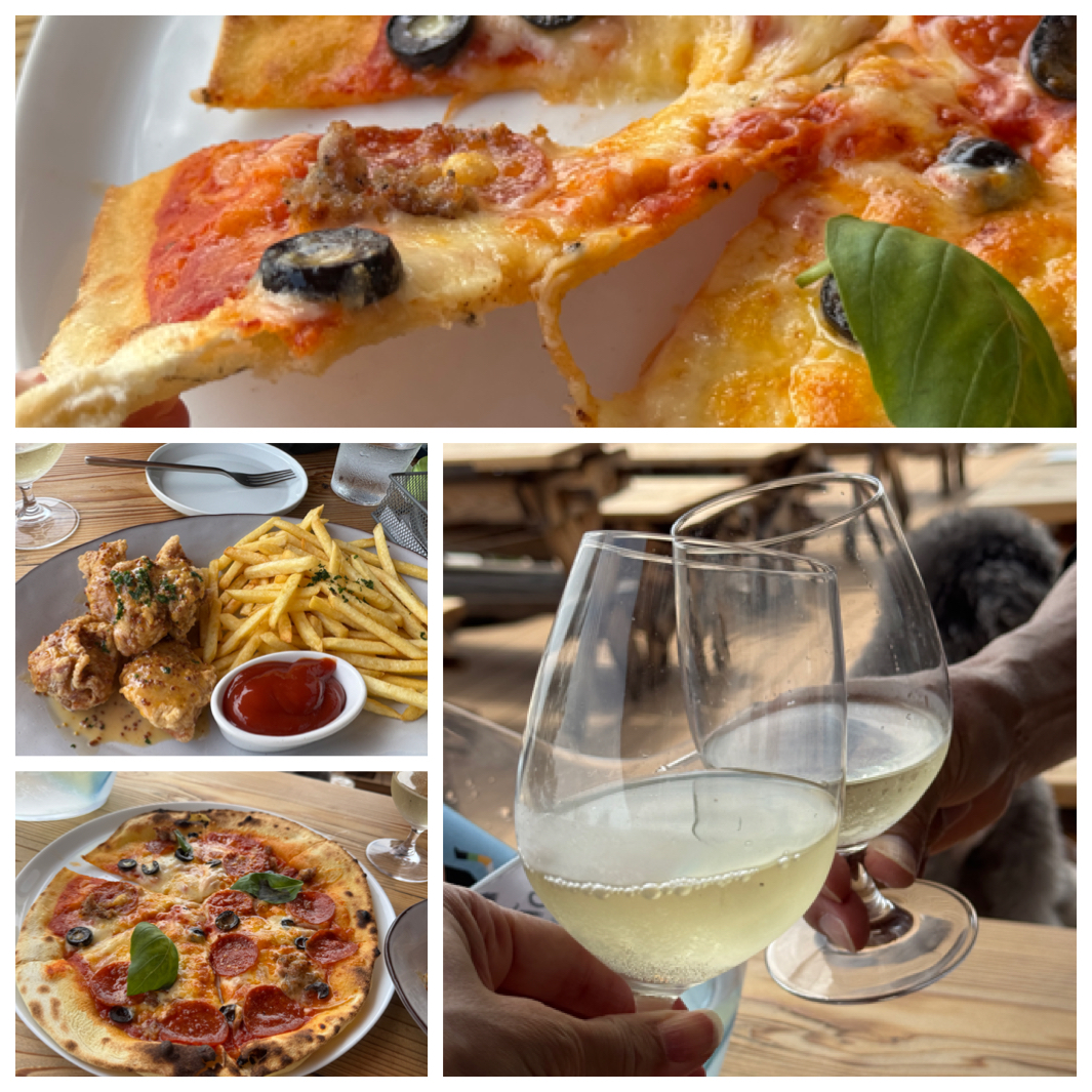 ピザは薄くてカリッとモチっと♪白ワインはスッキリしてフルーティー。